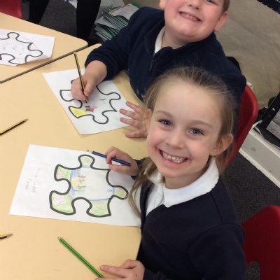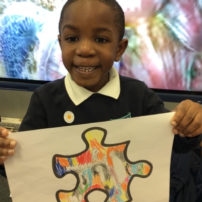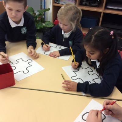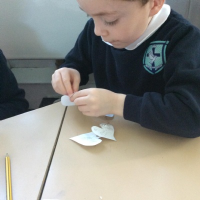 This week we have focused on 'connections' during Children's Mental Health week. We started the week by discussing the different ways we connect with one another in and out of school. We read the story 'The Invisible String' and discussed the people we love who are connected to us. We talked about our feelings and how we feel when we are with these people and when we are apart. The children each drew their loved ones who are connected to them and threaded these onto their own strings. The children took these home to share with their families.