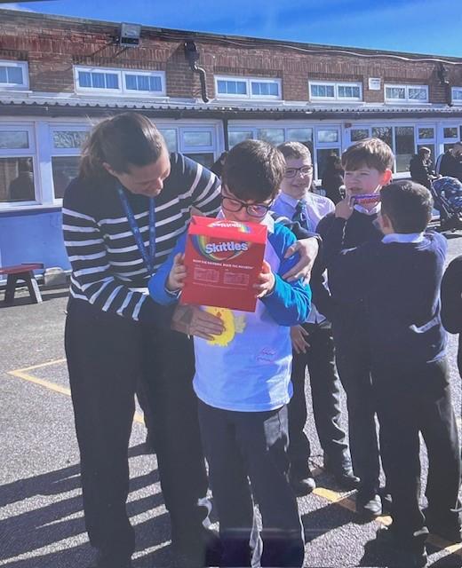 Jimmy-Dean has been busy with his Falcon friends making Easter bunnies. He has been selling them in the staffroom and at the office. They have been very popular and the total raised was £106.50. A percentage of the sales were given to Miss Pritchard ​who has walked 100km in March to raise money for Ovarian Cancer Action. Jimmy-Dean proudly presented her with a cheque. With the rest of the money we have bought a lovely tent for Falcons and some games. We look forward to seeing Jimmy-Dean on Dragon's Den in future years!